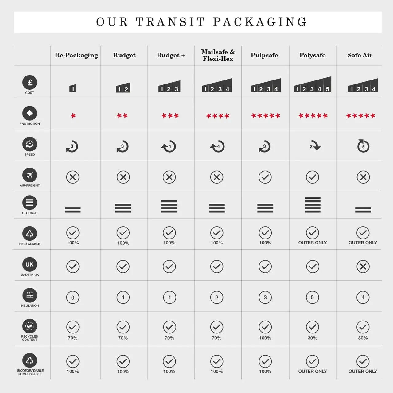 To help you figure out which range to choose from, we’re developed a simple comparison chart as well as a rating system. Ultimately it’s your choice how you send your wine and Champagne gifts, and we’d always recommend discussing your options with your courier in advance.