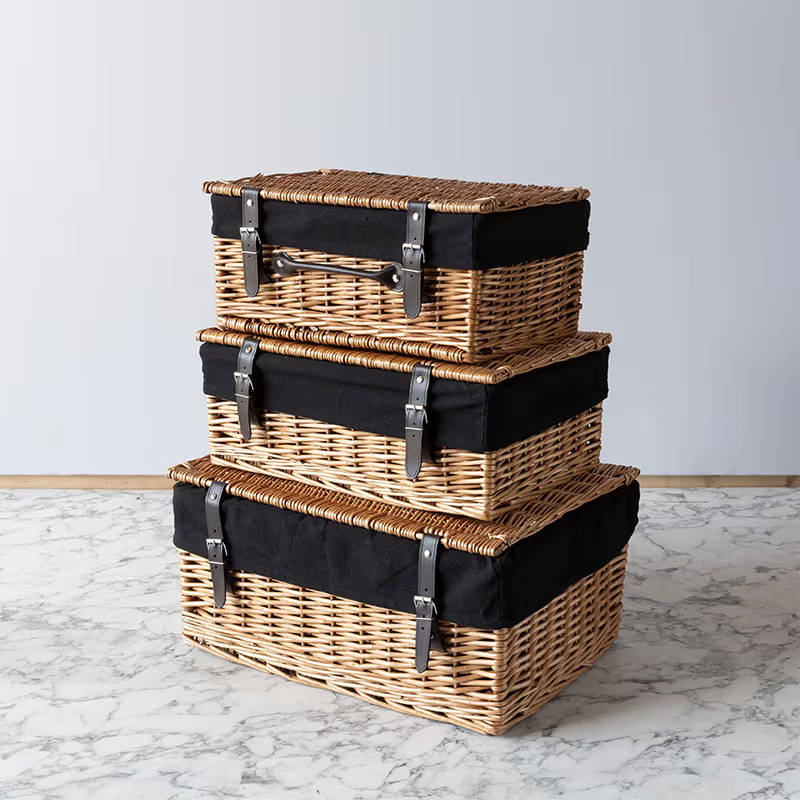 We’d recommend ensuring the contents you put in them are sealed though so they remain fresh and in good conditions. Some of our wicker baskets and trays come with linings that can also be used to stop fruit bruising in transit.