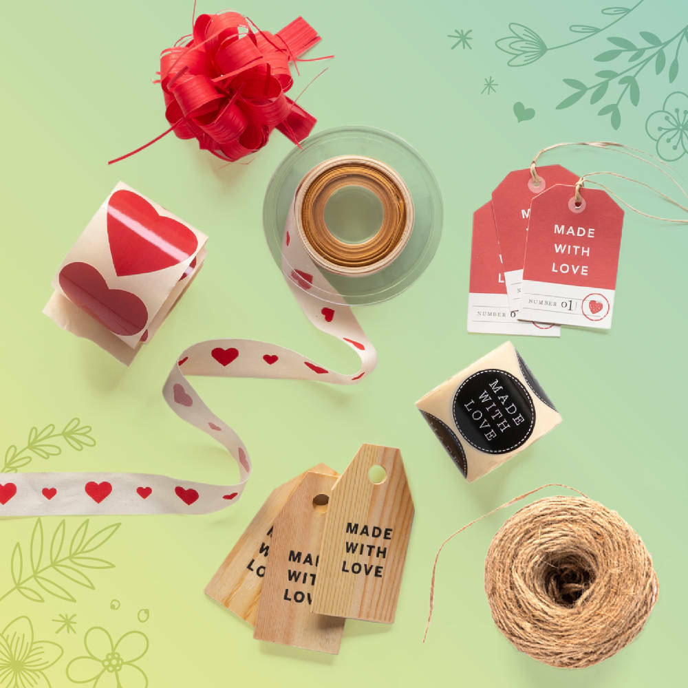 If you are after a cutesy, twee look, our Heart-Print Ribbon is biodegradable as well as charming, and our Satin Ribbon comes in a whopping 32 colours. Or for something a little more natural and earthy, our Natural Jute Twine is biodegradable, recyclable and adds that rustic texture.