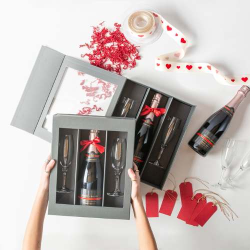 - Add something personalised, like branded wooden wine boxes, tote bags or ribbon.