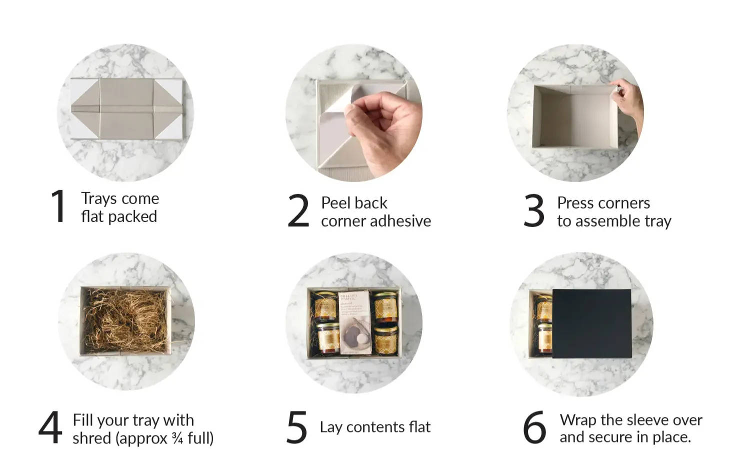 Simple to construct and flat-packed for easy storage, card gift trays are a fraction of the cost of other materials, so they'll pay you back time and time again. A great starter hamper as well as a handy all year rounder. Here's how to dress them in 6 easy steps.
