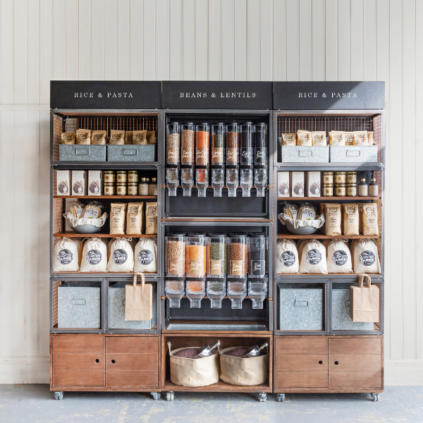 - gravity display units complete with Eco Flo bins