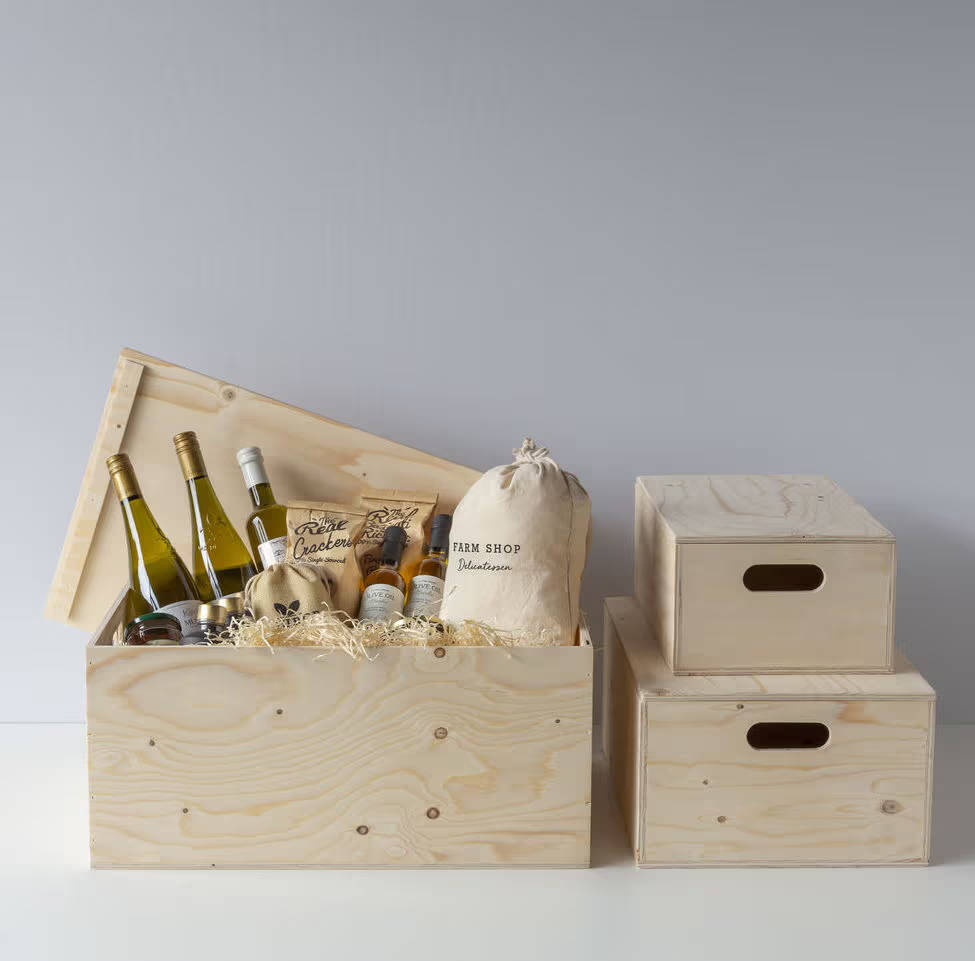 Our wooden hamper boxes are perfect for year-round gifting, but what really makes them useful for retailers is that they come in standardised sizes that make it even easier to offer customers a variety of price points.