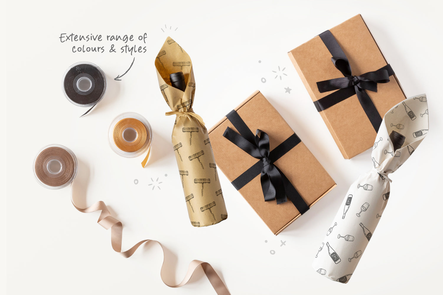 Always the cherry on top, our array of tissue paper, labels, ribbons, stickers and bows are the perfect way to wrap things up and will make an impression that lasts a lifetime. Have them branded for extra pizzazz – and that all-important personal touch.